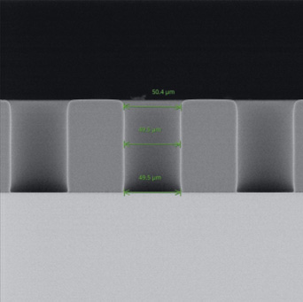 基于甲基丙烯酸酯共聚樹脂體系,系列膠樣應(yīng)用厚度范圍覆蓋5-120um負(fù)性封裝光刻膠,具有高分辨,高靈敏度,能量窗口寬,高工藝寬容度和易去膠等優(yōu)點(diǎn),能夠耐受銅、鎳、錫、銀和金等金屬的化學(xué)電鍍條件,廣泛應(yīng)用于銅凸點(diǎn),重布線等先進(jìn)封裝工藝,亦具有良好的耐刻蝕性和耐高溫性能,使得在TSV等3D封裝工藝具有廣闊的應(yīng)用前景。